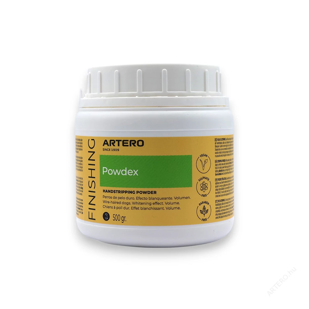 A kalcium-karbonát alapú TRIMMELŐ POR - ARTERO gyorsan felszívja a szőrszálak felületéről a zsírt, ezzel jelentősen csökken a csúszás és hatékonyabbá válik az elhalt szőrszálak eltávolítása, tépése.