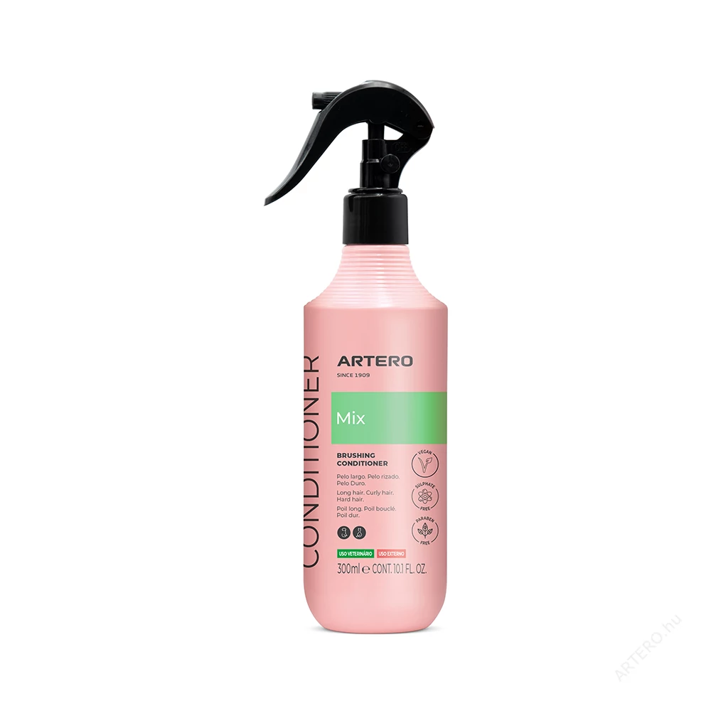 Az ARTERO MIX – többfázisú szőrkondicionáló nagyon jól alkalmazható fürdetés előtti elővágáskor, valamint fürdetés után, száraz és nedves szőrre egyaránt. Csúszóssá, jól bonthatóvá, könnyen kefélhetővé és fésülhetővé teszi a szőrt, növeli a száríthatóságot, csökkentve ezzel a munkaidőt.