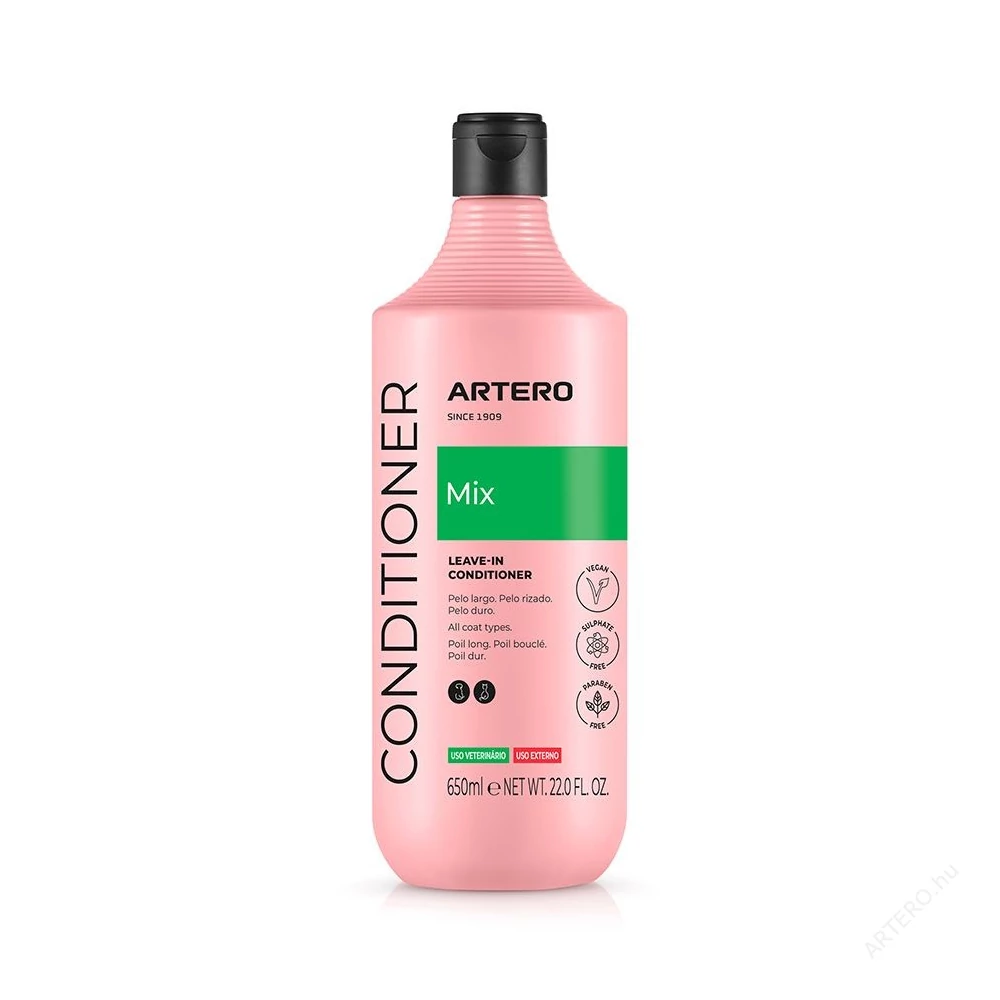 Az ARTERO MIX – többfázisú szőrkondicionáló nagyon jól alkalmazható fürdetés előtti elővágáskor, valamint fürdetés után, száraz és nedves szőrre egyaránt. Csúszóssá, jól bonthatóvá, könnyen kefélhetővé és fésülhetővé teszi a szőrt, növeli a száríthatóságot, csökkentve ezzel a munkaidőt.