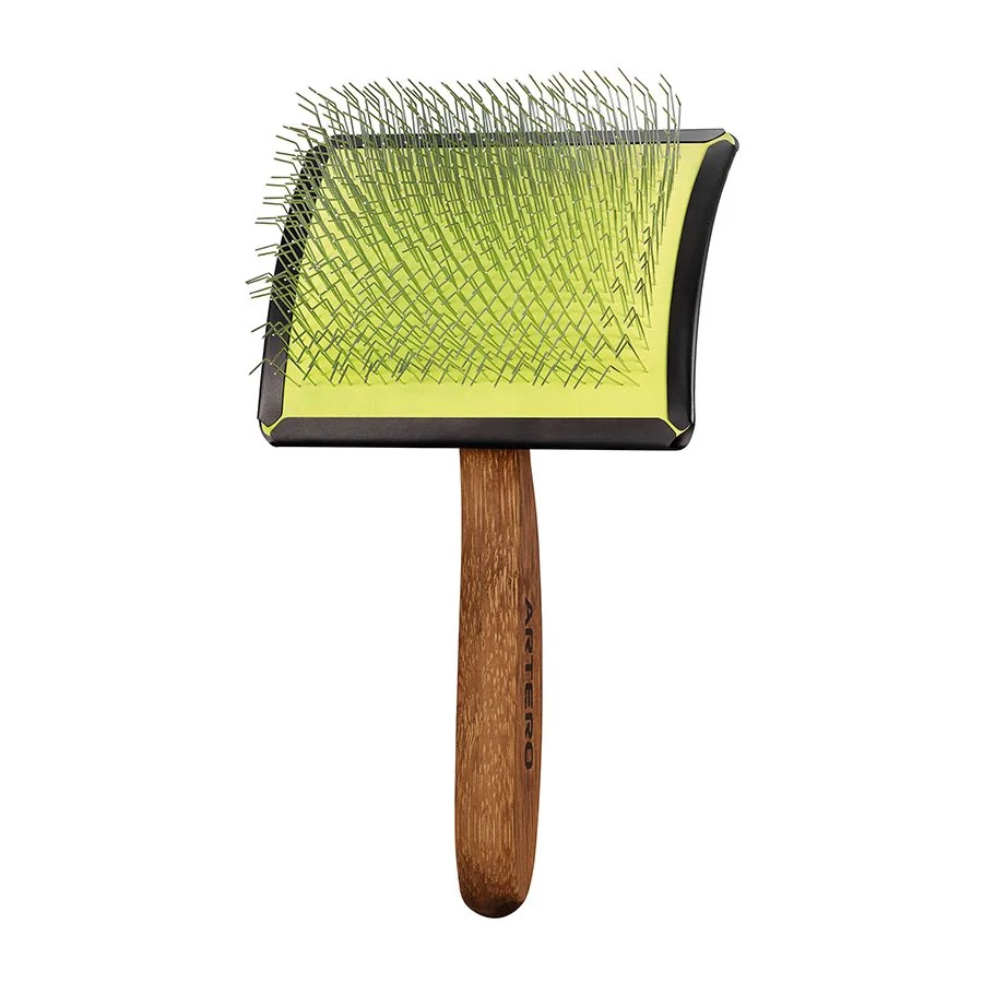 Az ARTERO MAYA ívelt tükrös kefe ideális választás mind otthoni gazdik, mind professzionális kutyakozmetikusok számára. Ergonomikus kialakítása és prémium anyagai lehetővé teszik a gyors, hatékony és kíméletes szőrzetápolást – még hosszú vagy könnyen gubancolódó szőr esetén is.